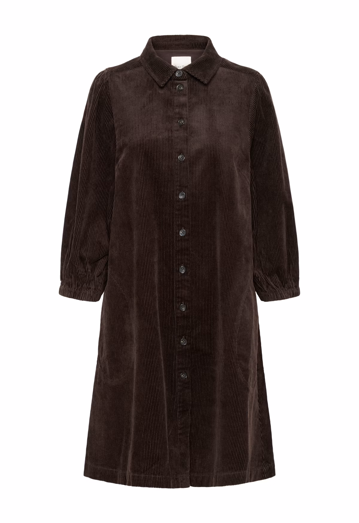 The model is 177 cm tall and wears a size 36. This soft corduroy shirt dress features a relaxed fit and full button-down front,