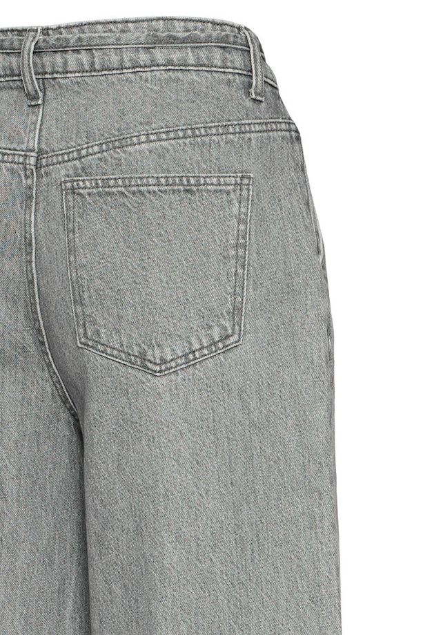 Wide leg jeans feature a high waist, relaxed and full-length silhouette, and a soft-textured appearance.