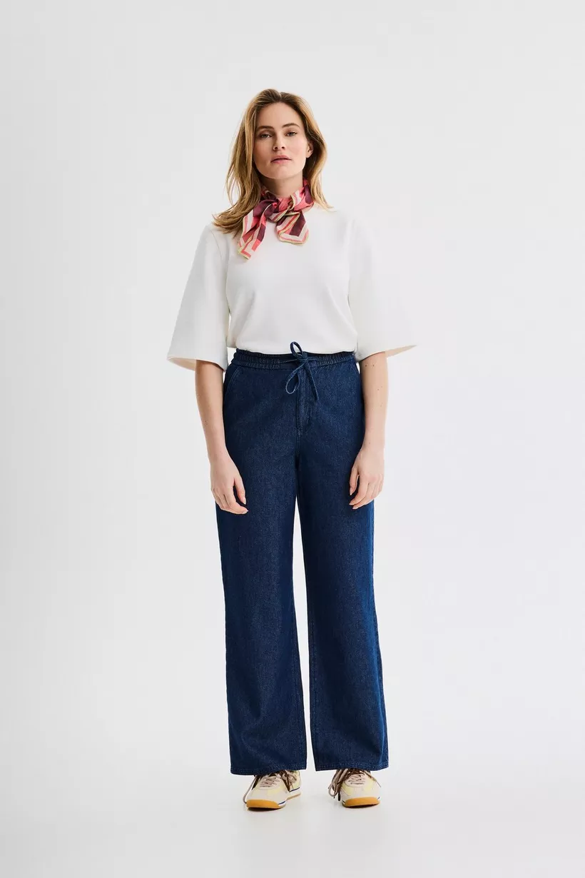 The denim you’ll live in. Deze jeans met relaxed fit is hét item voor een effortless look. Het model heeft rechte broekspijpen en een elastische tailleband met trektouwtje voor een laid-back vibe. Combineer met het bijpassende hemd voor een complete denim look.